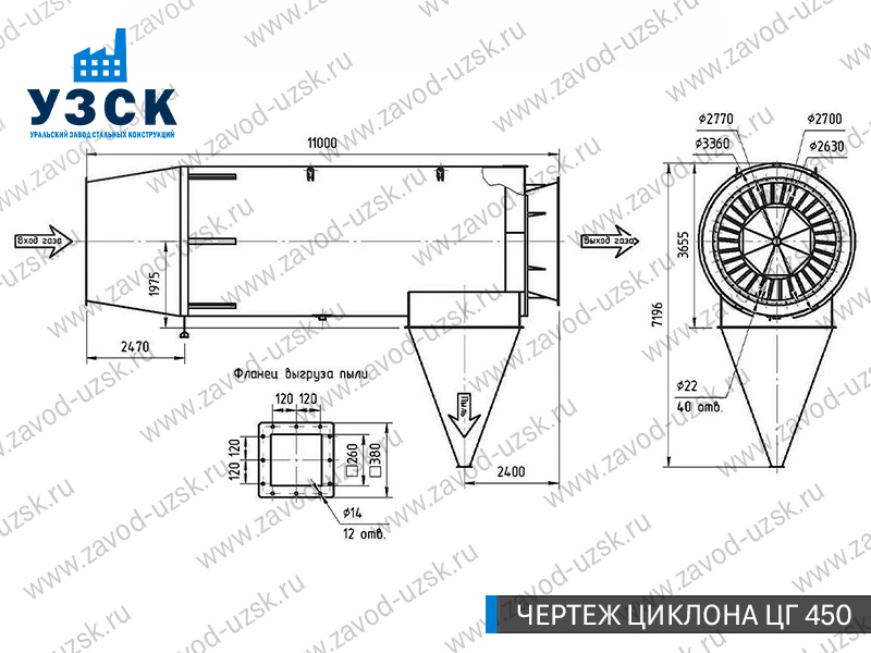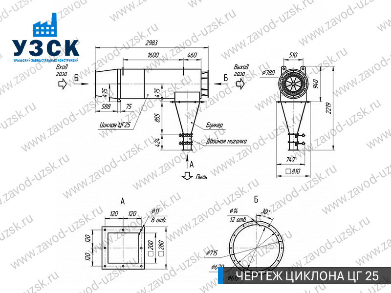 Монтаж циклона-искрогасителя ЦГ должен осуществляться непосредственно к горизонтальному вентиляционному каналу на входе в систему фильтрации и аспирации. Заказать изготовление по индивидуальному техзаданию или купить готовый циклон-искрогаситель ЦГ на заводе УЗСК в Салавате можно, оставив заявку прямо на сайте или позвонив по указанному телефону, уточнив все детали касательно продажи оборудования.