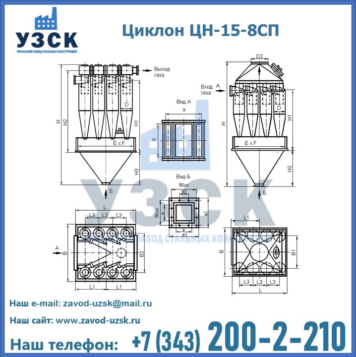 Завод «УЗСК» в Салавате предлагает большой выбор циклонов ЦН-15-500×8СП и прочих устройств, полностью укомплектованных и готовых к эксплуатации. Мы гарантируем соответствие оборудования всем требованиям ГОСТ и ТУ, износостойкость и высокую производительность предлагаемого оборудования. Уральский Завод Стальных Конструкций изготавливает и продает надежное, эффективное и производительное оборудование, имеющее длительную гарантию и большой эксплуатационный ресурс. Если требуется изготовить циклон нестандартных размеров, то такой вариант выполнения заказа тоже предусмотрен, так как предприятие имеет собственные производственные площади и надежных поставщиков. На все поставляемое или производимое оборудование имеются чертежи и прочая техническая документация. Заказать и купить циклоны или прочее оборудование высокого качества и по доступной цене можно через наш сайт или по указанному в разделе