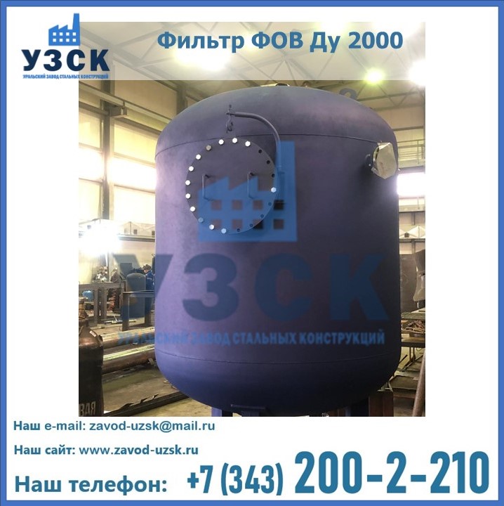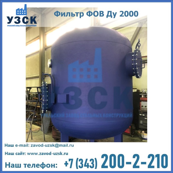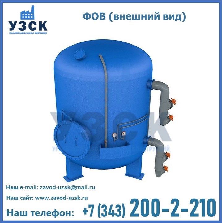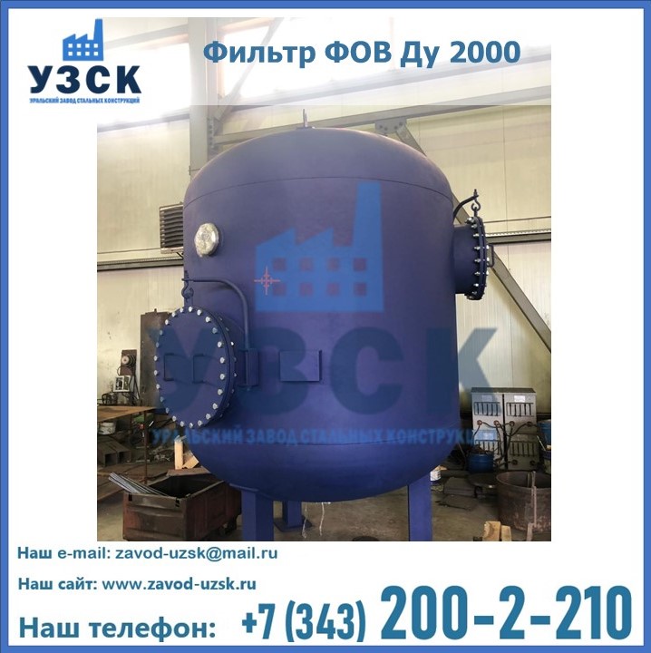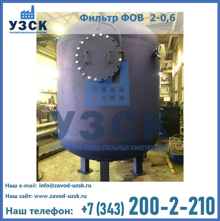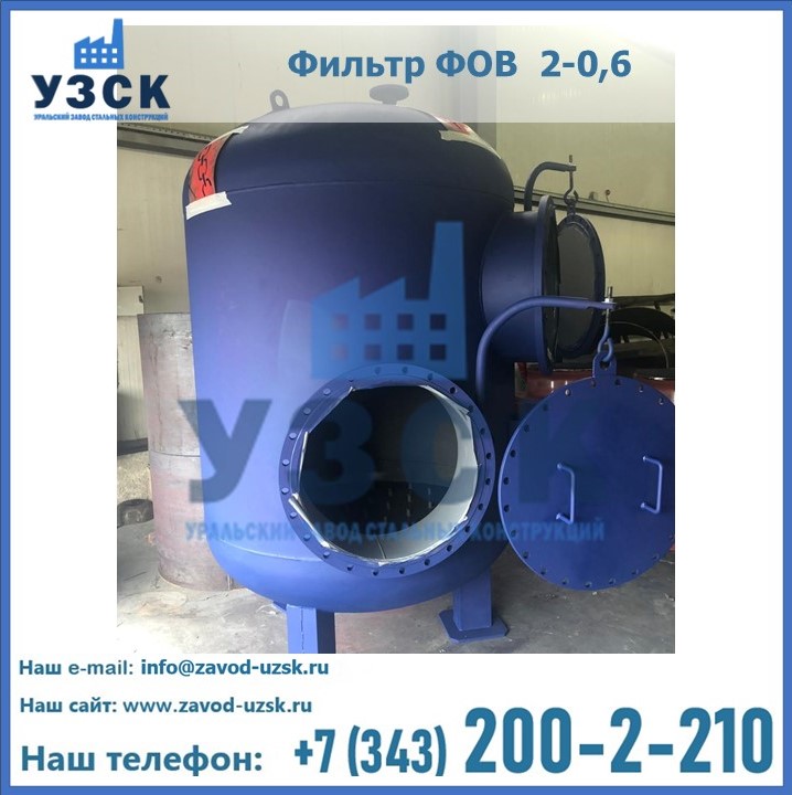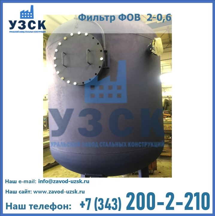 Удаление взвешенных веществ различного уровня дисперсности из рабочих жидкостей эффективно проводит фильтр осветлительный типа ФОВ (скорый или механический) — вертикально-цилиндрической формы установка, разработанная для систем водоподготовки различного класса. Оборудование представляет собой однокамерный агрегат для очистки воды рекомендованный для применения на станциях очистки стоков, в коммунальных котельных, на ТЭЦ, в промышленных отопительных системах и пр. Заказать производство ФОВ фильтров предлагает наш Уральский завод стальных конструкций в Салавате. У нас можно купить фильтрационное оборудование различного класса и типа, в том числе фильтры ФОВ из нержавеющей стали.