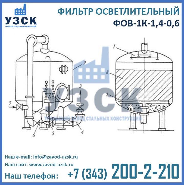 Производителем фильтров ФОВ однокамерных диаметром 1,4 м с рабочим давлением 0,6 МПа является Уральский Завод Стальных Конструкций (УЗСК). Производство фильтров ФОВ-1К осуществляется из листовой стали разных марок, в зависимости от условий эксплуатации оборудования. По окончании производственных работ завод УЗСК на собственном аттестованном гидростенде осуществляет гидравлические испытания фильтров ФОВ-1К 3,4-0,6 пробным давлением 0,9Мпа (9 кгс/см). Если у Вас остались вопросы по характеристикам осветлительных фильтров или Вы хотите узнать цены фильтров ФОВ-1К-1,4-0,6, сроки изготовления и условия сотрудничества, свяжитесь со специалистами завода УЗСК по координатам, указанным в разделе «КОНТАКТЫ».
